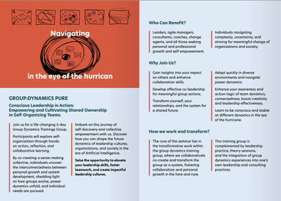 We see group dynamics training groups as the most intensive and effective approach to promoting conscious leadership. It has the capacity to train people to empower themselves, their own thinking, feeling, connecting, and acting. It is an experienced based form of training to transform power-dynamics from power-over/power-under to power-with and power-for for a collective future.